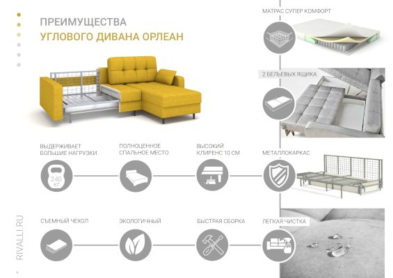 Угловой диван-кровать Орлеан (Rivalli) - за 99 723 руб. в Калуге. Купите на сайте kaluga.onlinemarketmebeli.ru или по телефону 8(800)505-30-63 уже сегодня! Уточнить наличие, комплектацию, актуальную цену можно бесплатно у менеджера ежедневно. Закажите Угловой диван-кровать Орлеан (Rivalli) до конца акции! Доступна покупка в кредит, рассрочку. Доставим со склада или на заказ.