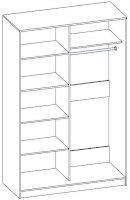 Данное изображение представлено в следующих цветах: корпус - Дуб Сонома, фасады - зеркало с пескоструйным рисунком, рамка двери и треки - Серебро матовое.