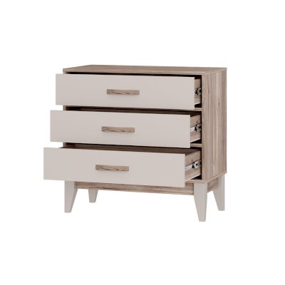 Комод «Скандика» КМ-01 с тремя ящиками подойдет и для спальни, и для гостиной, и для детской. В ящиках с удобными геометрическими ручками удобно хранить постельное белье и одежду.