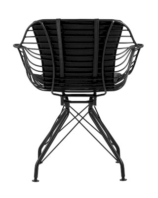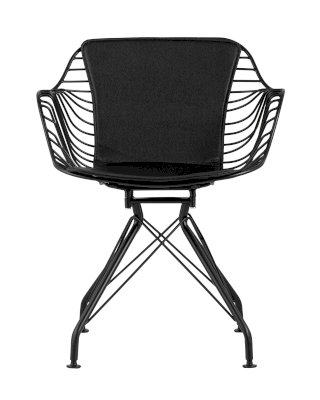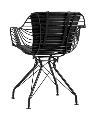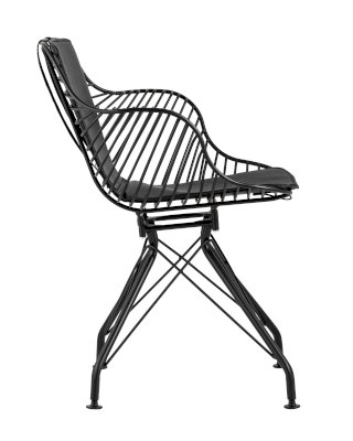 Современное кресло Thomas станет акцентом в интерьере кухни или обеденной зоны. Спинка и сидение выполнены из металлических прутьев черного цвета, из которых по бокам плавно переходят подлокотники. Обивка изготовлена из черной экокожи. Утонченные ножки выполнены из металла в тон сидения.