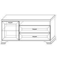 Для закрытого хранения предусмотрены два 2 ящика и отделение с дверкой. Ниша под крышкой визуально облегчает конструкцию изделия и помогает разместить различную телевизионную аппаратуру.