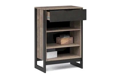 Комод включает выдвижной ящик и шкаф с распашными дверями и полкой внутри
