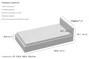Рекомендуемая высота матраса: 20 см