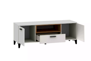 Продуманная конструкция и минимальные габариты делают тумбу ТВА Bergen функциональной и стильной. Простые геометрические формы, нейтральные цвета с ярко выраженными элементами в виде контрастных вставок цвета дерева и черных ручек подойдут для светлых и темных интерьеров.