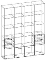 Применение задней стенки из ЛДСП (в ячейках с ящиками и фасадами) позволяет использовать данный стеллаж для зонирования пространства (чтобы предотвратить опрокидывание, необходимо обеспечить крепление стеллажа к стене).