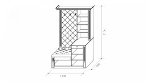 Наполнение: крючки для одежды + ниша для обуви + 2 распашных шкафа с полками + выдвижной ящик