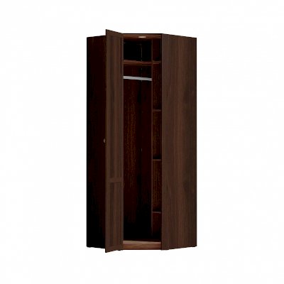 Угловой высокий шкаф использует рационально самую сложную площадь в комнате - угол. Он комплектуется внутренним стеллажом с регулируемыми по высоте полками и стационарной штангой для верхней одежды. Длина штанги 817 мм, что позволит свободно развесить более 10 плечиков с зимним гардеробом. Беспроводной светодиодный светильник поможет сориентироваться и быстро найти необходимое. Он включается только при открытой двери. Легкая установка светильника на магнитное крепление - не требует сверления, прокладывания провода, подключения к сети.