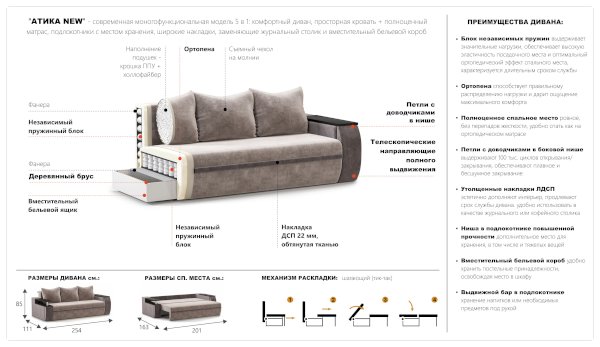 Мягкие элементы: Ткань, Эластичная пена марки EL, Независимый пружинный блок, ППУ, Спанбонд