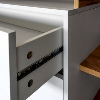 Фурнитура: Распашные двери на четырёхшарнирных петлях; выдвижные ящики - фолдинги на шариковых направляющих.
