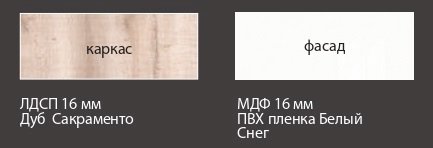 Каркас: ЛДСП 16 мм в декоре «Дуб Сакраменто»