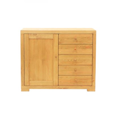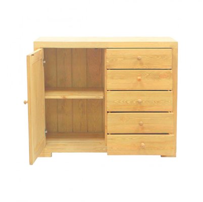 Отличный комбинированный комод.  Его современная внешность - яркая, лаконичная, мобильная - тем не менее не лишена классического очарования мебели из натурального дерева. Комод оснащен отделением с дверью и полкой и рядом ящиков, в которых вы можете разместить множество необходимых вещей.  Модель выполнена из прочного и экологически чистого материала - массива сосны. Настоящее дерево в доме всегда придет ему дополнительный уют и достоинство.