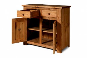 Тумба KTB22 - за двумя распашными дверками одна сплошная полка. Два выдвижных ящичка без направляющих на деревянных полозьях.