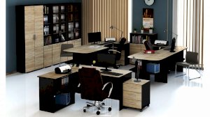 Стильная эргономичная мебель из модульной серии «Успех-2» оформлена в респектабельно-эффектном сочетании контрастных оттенков натуральной древесины: тёмного «Венге Цаво» и светлого «Дуб Сонома». В коллекцию входят столы, шкафы, стеллажи, тумбы разной конструкции и назначения, что позволяет подобрать оптимально отвечающую вашим требованиям меблировку для каждой комнаты офиса.