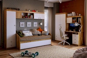 Дополнительное удобное спальное место или большой выдвижной ящик для хранения постельного белья и игрушек, на выбор, решать вам. Детская «Форсаж» - это стильная, современная детская, которая понравится каждому ребенку.