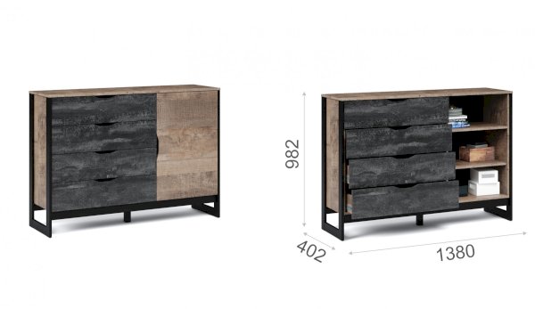 Цвет фасада: Дуб гранж песочный/Железный камень