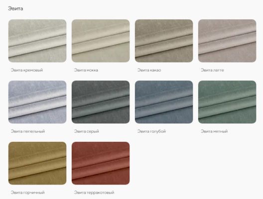 Цвет БЕЖЕВЫЙ / БЕЛЫЙ / ГОЛУБОЙ / ЗЕЛЕНЫЙ / КОРИЧНЕВЫЙ / РОЗОВЫЙ / СЕРЫЙ / СИНИЙ / СИРЕНЕВЫЙ / КОФЕ