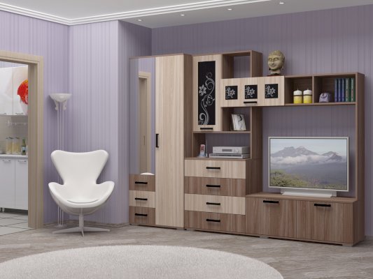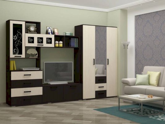 Эта модульная система отличается своей компактностью, легкостью, функциональностью. Стенка подойдет как в малогабаритную квартиру, так и в просторную гостиную.
