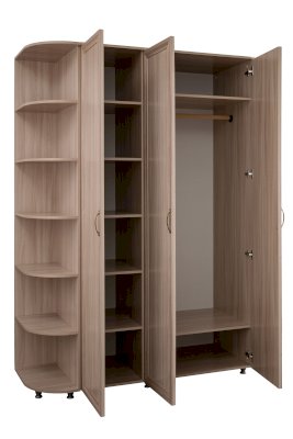 Распашной шкаф с полками, с вместительным отделением со штангой под одежду. Достаточно глубокое внутреннее пространство позволяет хранить в таком шкафу множество разнообразных вещей.