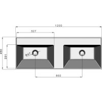 Отверстие для смесителя: по 1 у каждой раковины (по центру)