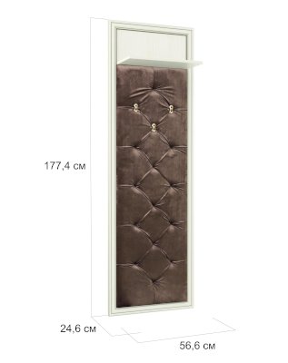 Вешалка оборудована шляпной полкой из ЛДСП в цвет основной части модуля и имеет три металлических крючка для одежды.