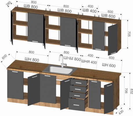 Шкаф верхний: 800х705х300 мм