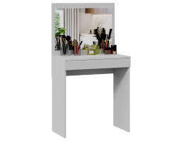 Несмотря на свои компактные размеры, туалетный стол имеет функциональный ящик с шариковыми направляющими для хранения парфюмерии, украшений и многого другого, достаточно вместительную столешницу, где можно разместить все необходимые аксессуары и полноценное зеркало. В этом туалетном столике нет ничего лишнего, только самое необходимое для уголка женской красоты.