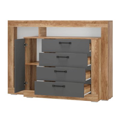 Комод многофункциональный Прима КМ-17 - удобная система хранения для одежды, постельных принадлежностей или других хозяйственных аксессуаров. Все необходимые вещи можно расположить на полках за распашной створкой, а также в трёх вместительных выдвижных ящиках на роликовых направляющих, которые обеспечивают легкую и бесшумную эксплуатацию модели.