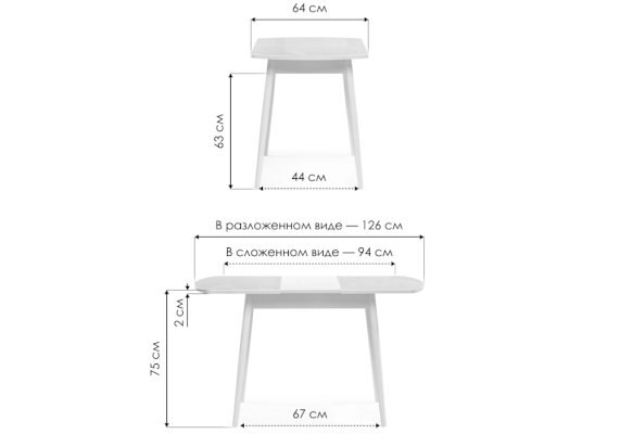Длина разложенного столика, мм | 1260 |
