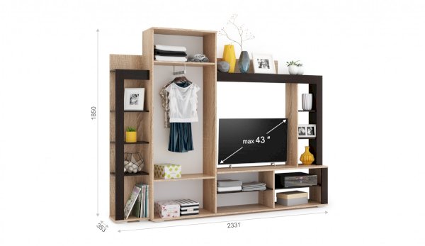 Функционал зона для ТВ / хранение одежды / хранение посуды