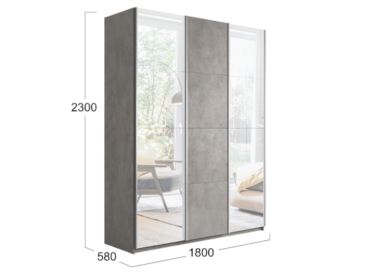 Трехдверный шкаф-купе с 2 зеркалами Траст 1800 (Трия)
